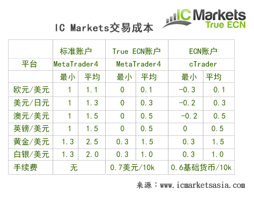 接下来主要考察其点差,交易条件,滑点等项目,下面内容截自IC Markets中文官网,经测试,基本相符。